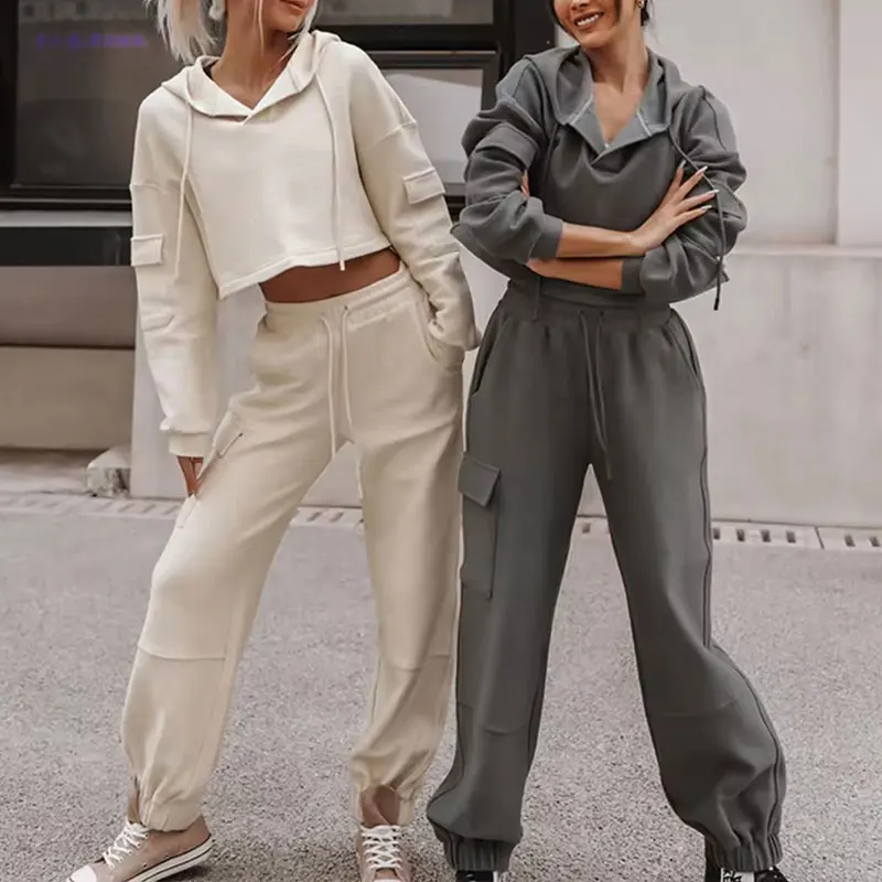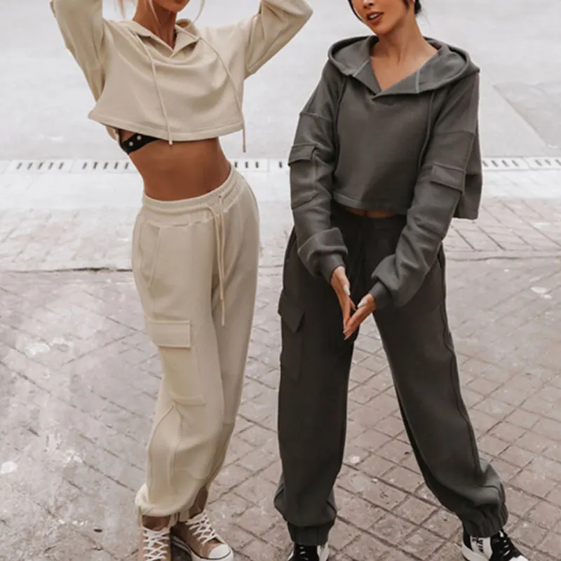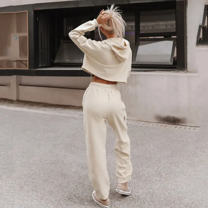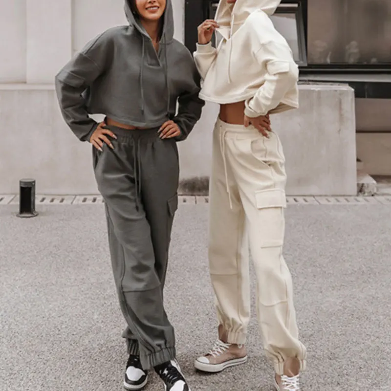 Custom Tracksuits Heavyweight Cotton French Terry Vintage Solid Color Crop Top Hoodie Joggers Women Hoodie and Sweatpants Set